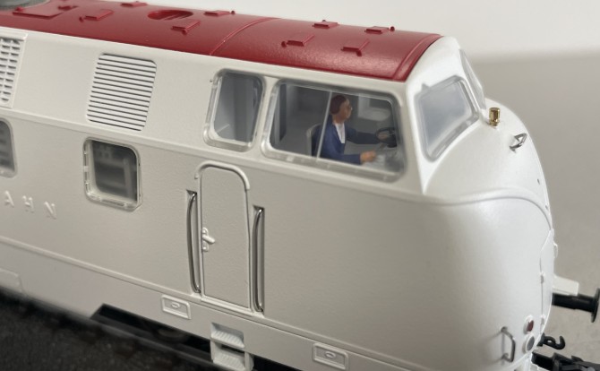 Bild unten: Der Führerstand ist detailliert nachgebildet und mit einer Lokführer-Figur besetzt.
