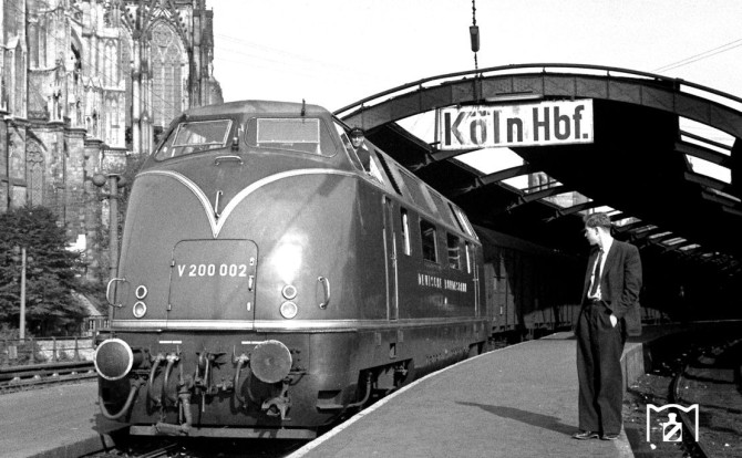 Bild oben: Die V 200 002 wird 1955 im Kölner Hauptbahnhof bewundert.