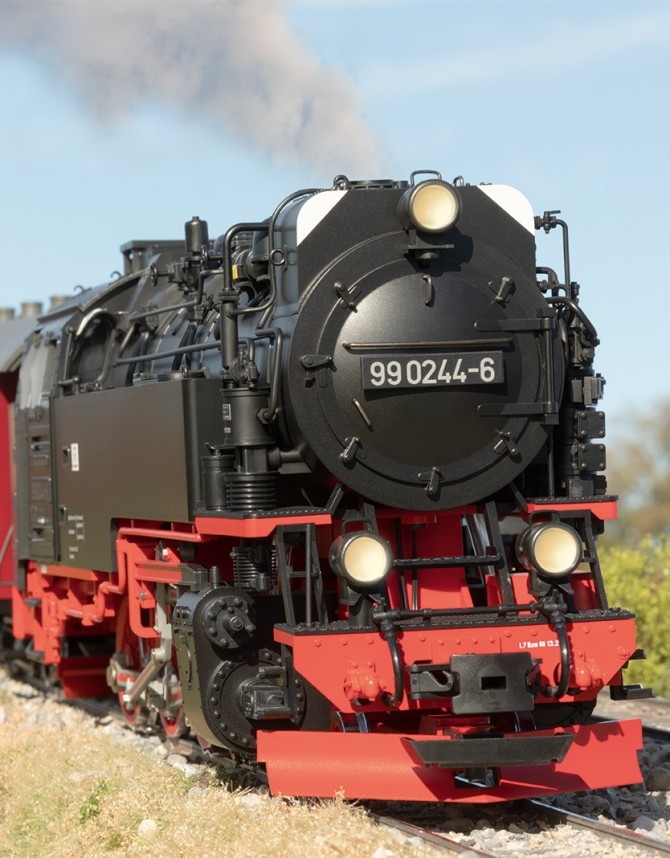 Die Deutsche Reichsbahn der DDR hat sich in den 1970er Jahren entschlossen, die Neubaulokomotiven der Baureihe 99.23-24 aus wirtschaftlichen Gründen auf Ölhauptfeuerung umzubauen. So wurden zwischen 1976 und 1981 alle Maschinen im RAW Görlitz entsprechend umgebaut.Durch die ab 1981 beginnende Ölkrise wurde die Versorgung der Harzer Schmalspurbahn mit Schweröl aber immer schwieriger und vor allem teuer.Daher entschloss man sich schon 1981/82, die Lokomotiven wieder auf Rostfeuerung (Kohle) zurück zubauen.Das Modell wurde entsprechend am Tender geändert und stellt den Betriebszustand der Lok 99 0244-6 um 1976 dar.Das Modell besitzt außerdem weiße Markierungen am Vorwärmer und an den Sonnenblenden der vorderen und hinteren Führerhausfenster. Diese Markierungen sind auf den Transport zum und vom RAW Görlitz zurück zu führen. Die Loks dieser Baureihe sind verhältnismäßig hoch und verladen auf einem Schmalspur-Transportwagen stellen sie eine Lademaßüberschreitung dar. Dieser Umstand machte die weißen Markierungen notwendig. Die Markierungen sind aber meist sehr schnell unter dem Schmutz des Alltagseinsatzes wieder verschwunden.