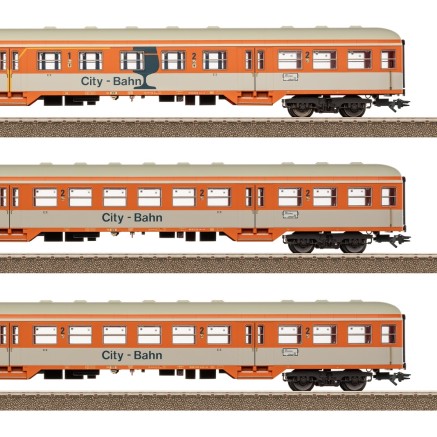 Zur BR 218 erscheint ein Wagenset aus drei Mitteleinstiegswagen im City Bahn Design. Alle Wagen besitzen Innenbeleuchtung und stromführende Kupplungen.